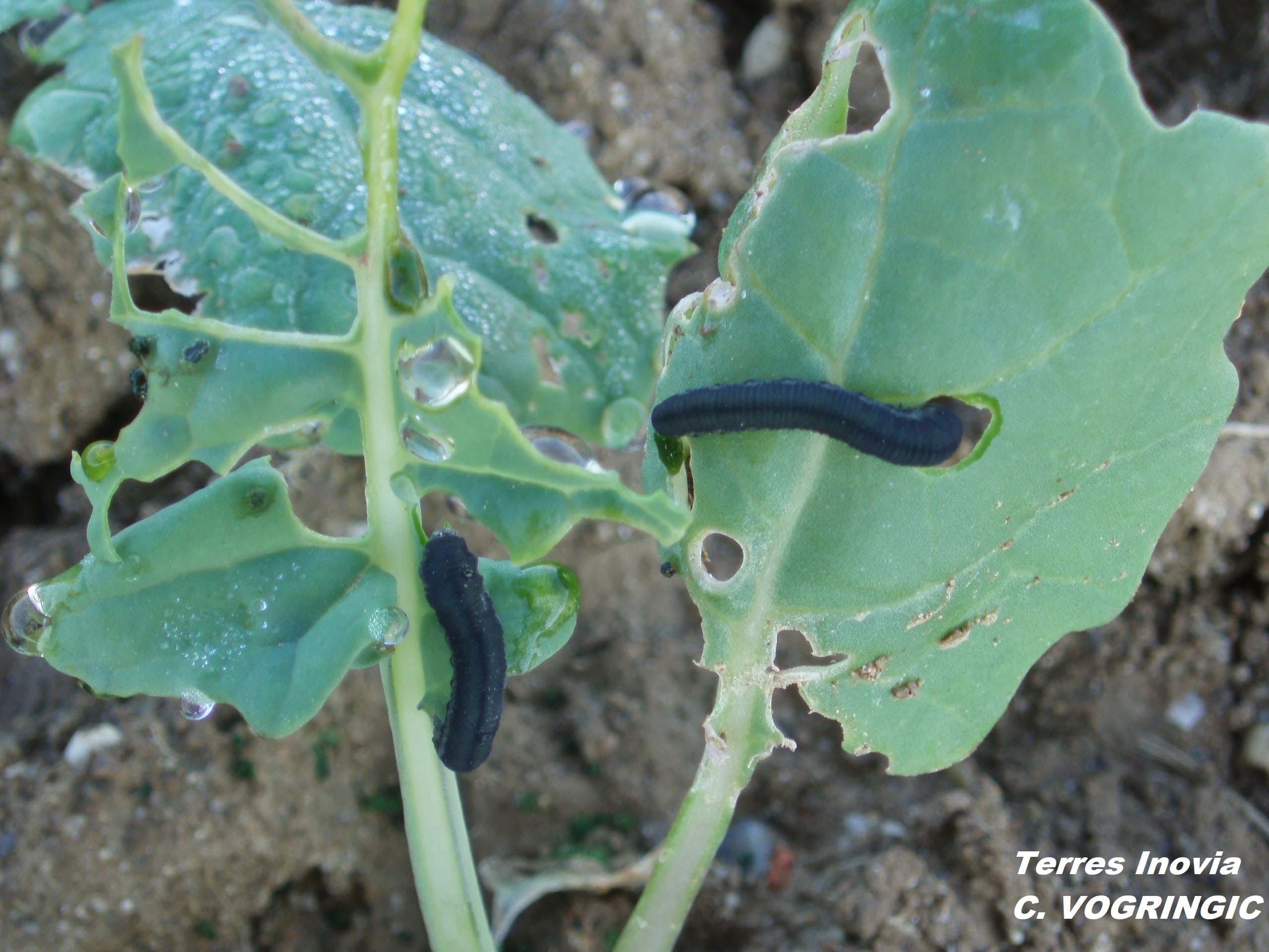 Faible : Présence de larves sur les plantes avec 5% de la surface foliaire détruite